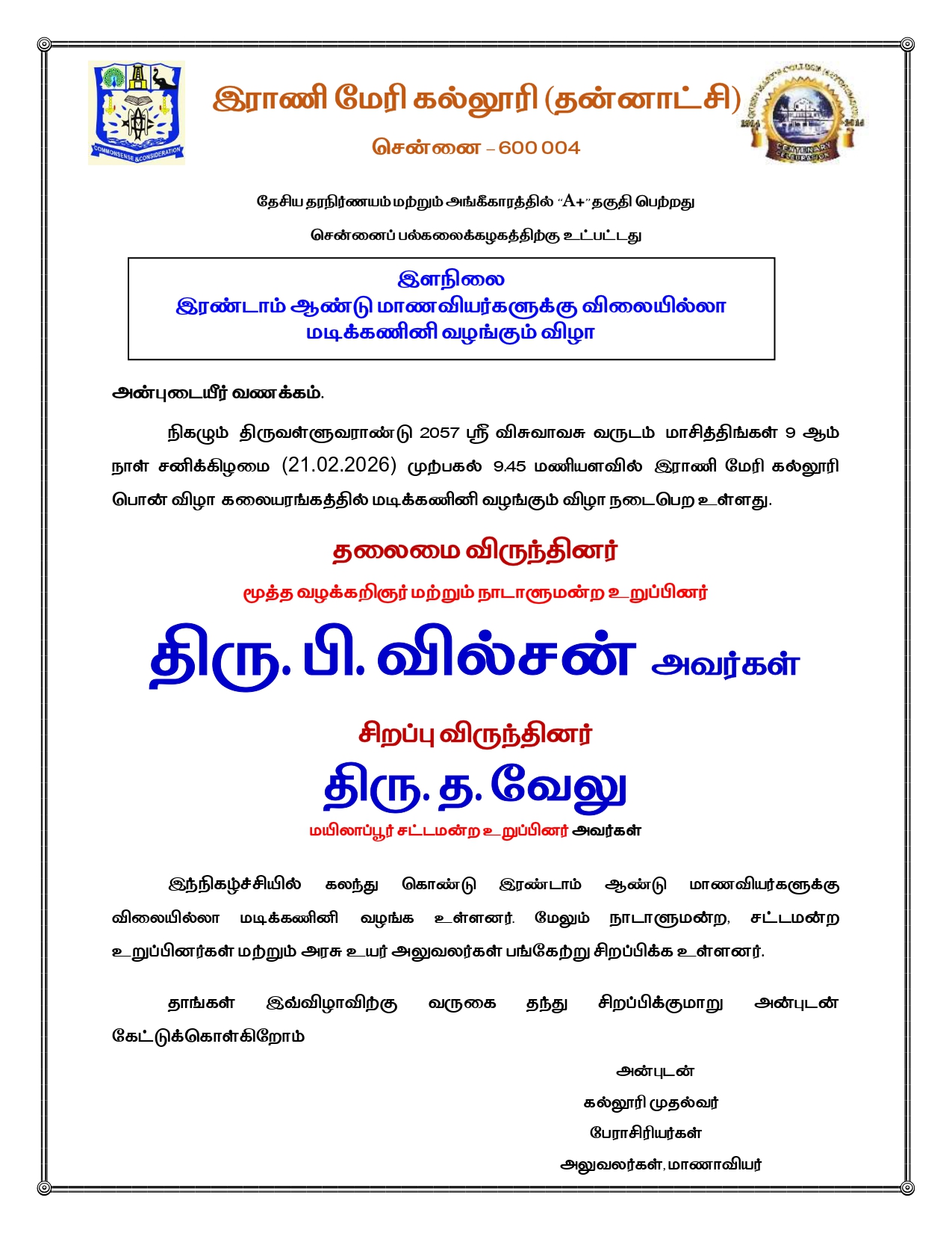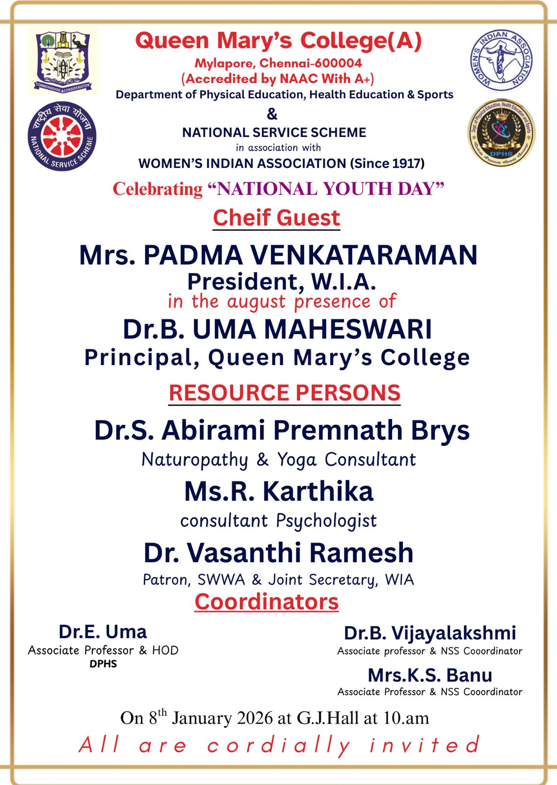 The college enshrines in its vision the ideal of democratization of education by drawing into its ambit women from the deprived sections of society and empowering them with an education that hones life skills and employability.